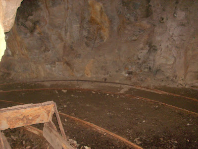 Los Chicos encontraron una estructura que parece ser un ascensor por el cual comunicaban los distintos niveles de la mina, al material lo sacaban por medio de carritos, ya que se pueden ver algunos rieles en el piso de la mina.